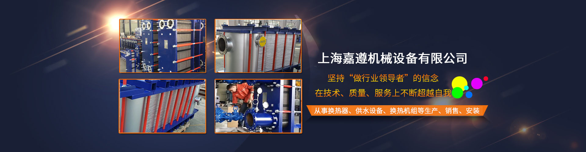 上海嘉遵机械设备有限公司 公司为了更广泛的开拓市场,结合现代网络营销新潮之路,扩大新增产品项目(列管式)换热器。于2019年在上海奉贤区注册成立上海“嘉遵”机械设备有限公司。办公地点上海市嘉定区;2016年生产厂区迁出上海,现厂区坐落于江苏省太仓市虹桥村,占地面积10余亩,引进最新设备板片液压机8000吨15000吨18000吨机型齐全,10吨以上行车两台/每车间,12米自动切割机一台,剪板机两台,卷板机两台,大型机床数台,大型焊接设备数拾台,吊挂式喷砂房一间,自动锯床一台,压力测试设备两台,机动叉车等配套设施齐全。年产板片30余万平方米,设备出炉占板片产量的91%。现在职人员110人。现与多家知名品牌供应商合作。该公司有独立的科研团队、设计、预算、流水线生产调控体系,电子...